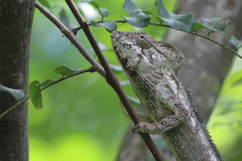 The chameleons absolutely fascinated me, particularly in their ability to change colour, and often quickly. It’s an ancient lizard with a curled up tail and often found hiding in tree branches. The males are distinct with their casque helmet-like horns on top of their head. Flashes from my camera, seem to disturb them as their eyes rolled around and their reptilian skin changed colour. Madagascar contains nearly half of the chameleon species in the world, of which the majority are endemic.